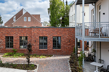 Das Projekt am Eingang der Ziegelhofstraße vereint verschiedene Möglichkeiten auf kleinem und historischem Grund. Das macht das Objekt so besonders. Auf rund 850 Quadratmetern entsteht ein Gebäudeensemble aus drei Einheiten, die Wohnen und Arbeiten kombinierbar machen. Das Highlight bilden die insgesamt 10 kuscheligen Terrassen und Balkone, die innerhalb von zwei Patios zum Verweilen einladen und den Ort zu einer grünen Oase werden lassen. Alle drei Gebäude werden nach altem Vorbild saniert, um die Architektur zu erhalten, die den Charakter der Ziegelhofstraße und des Viertels ausmachen.
