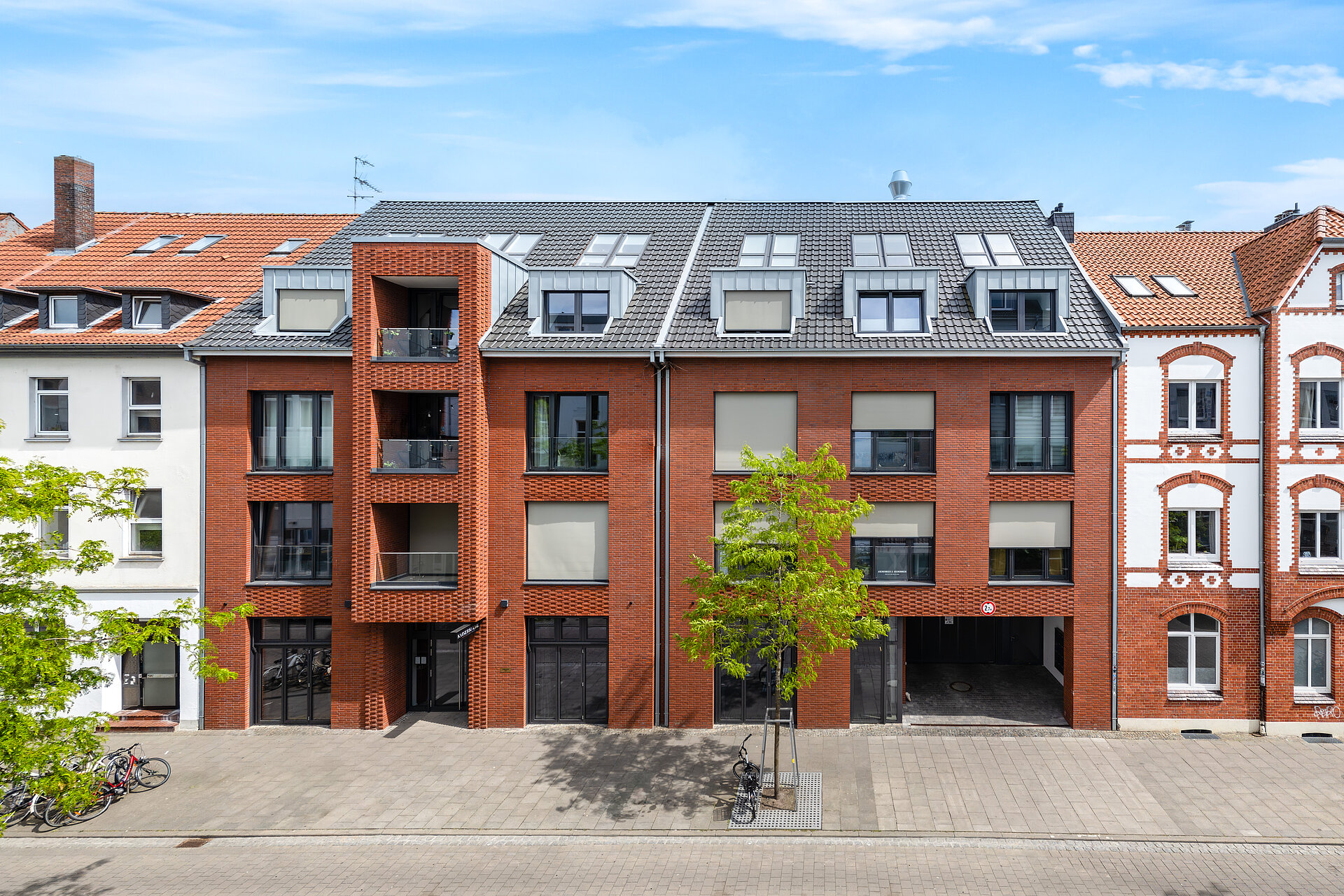 Das Bahnhofsviertel in Oldenburg entwickelt sich zum gefragten Wohnquartier mit urbanem Flair. Als Projektentwickler tragen wir mit dem Quartier Rosenstraße unseren Teil dazu bei – und nicht nur dort: Nur einen Katzensprung von Bahnhof, Fußgängerzone, Schloss, Schlosshöfen und den Wochenmärkten der Altstadt entfernt, haben wir an der Kaiserstraße 18–20 ein stilvolles Wohnhaus mit einer hochwertigen Gastronomiefläche im Erdgeschoss entwickelt. Mit der Stadtplanung abgestimmt, bereichert die fein gestaltete Klinker-Fassade mit typisch nordischem Charme das Straßenbild.